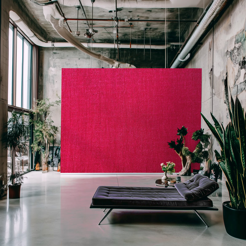 A bold fuchsia weave that radiates energy and softness in equal measure. Pink Loom turns walls into fabric—vibrant, tactile, and slightly vintage. It makes a space feel confident, creative, and full of playful tension.