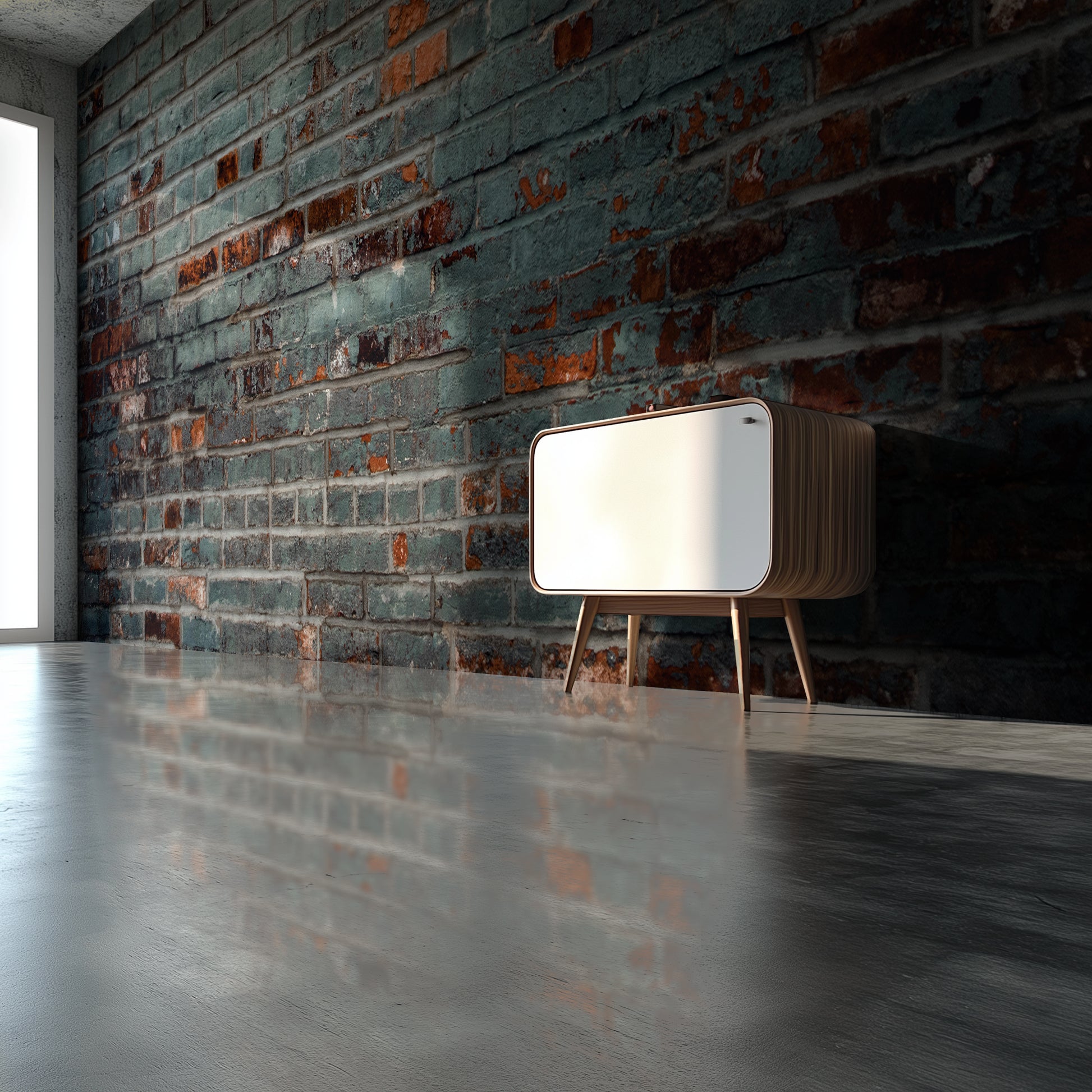 Grey-washed bricks peek through layers of blackened soot and rust—a wall that’s lived. Ashbrick is all grit and patina, softened by time. This vintage brick mural gives your space a sense of history and texture without overpowering it.