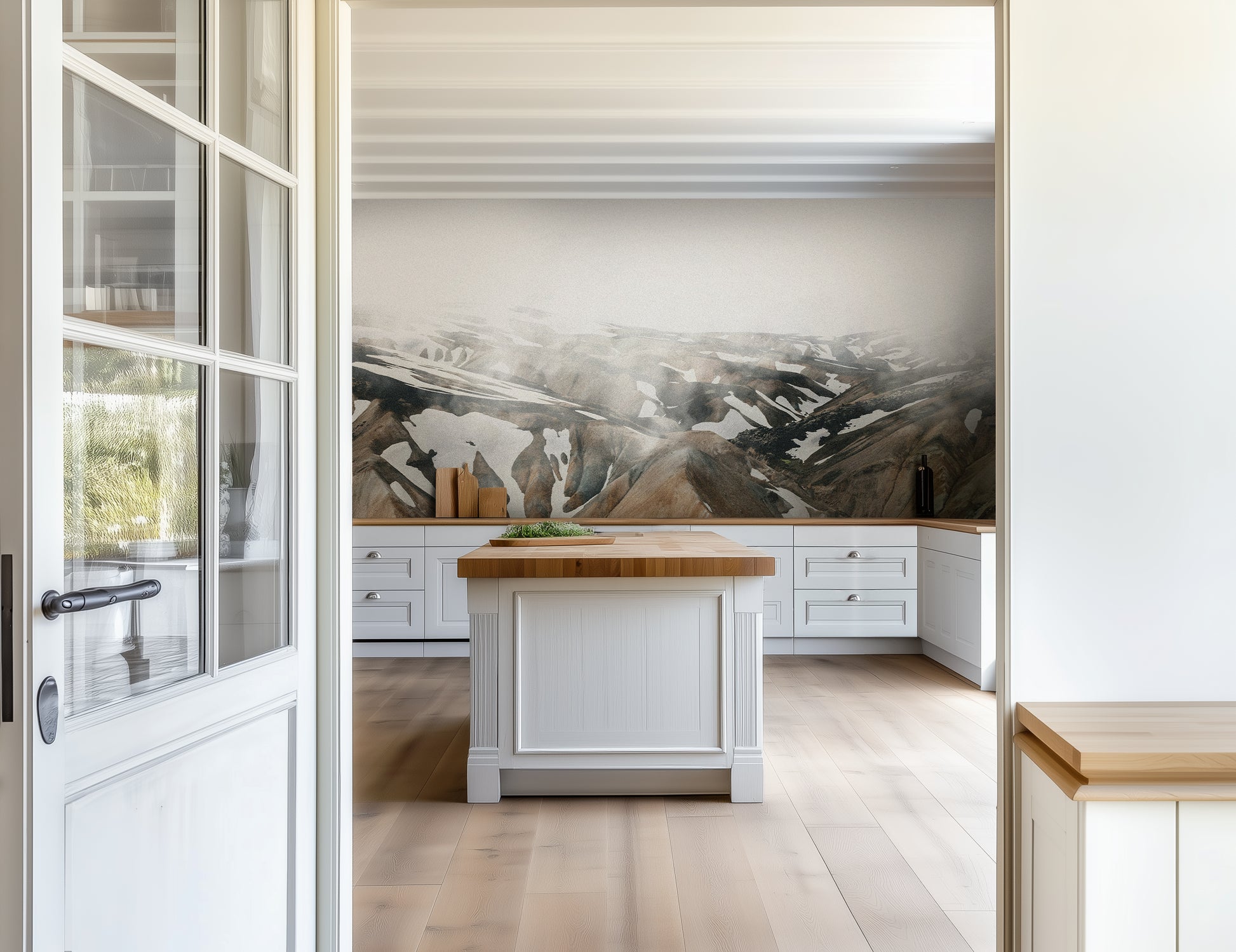 How it fits into current design trends: Earth-tone maximalism and travel-inspired wall art are key trends in interior design. This wallpaper brings both, with the quiet authority of untouched nature.