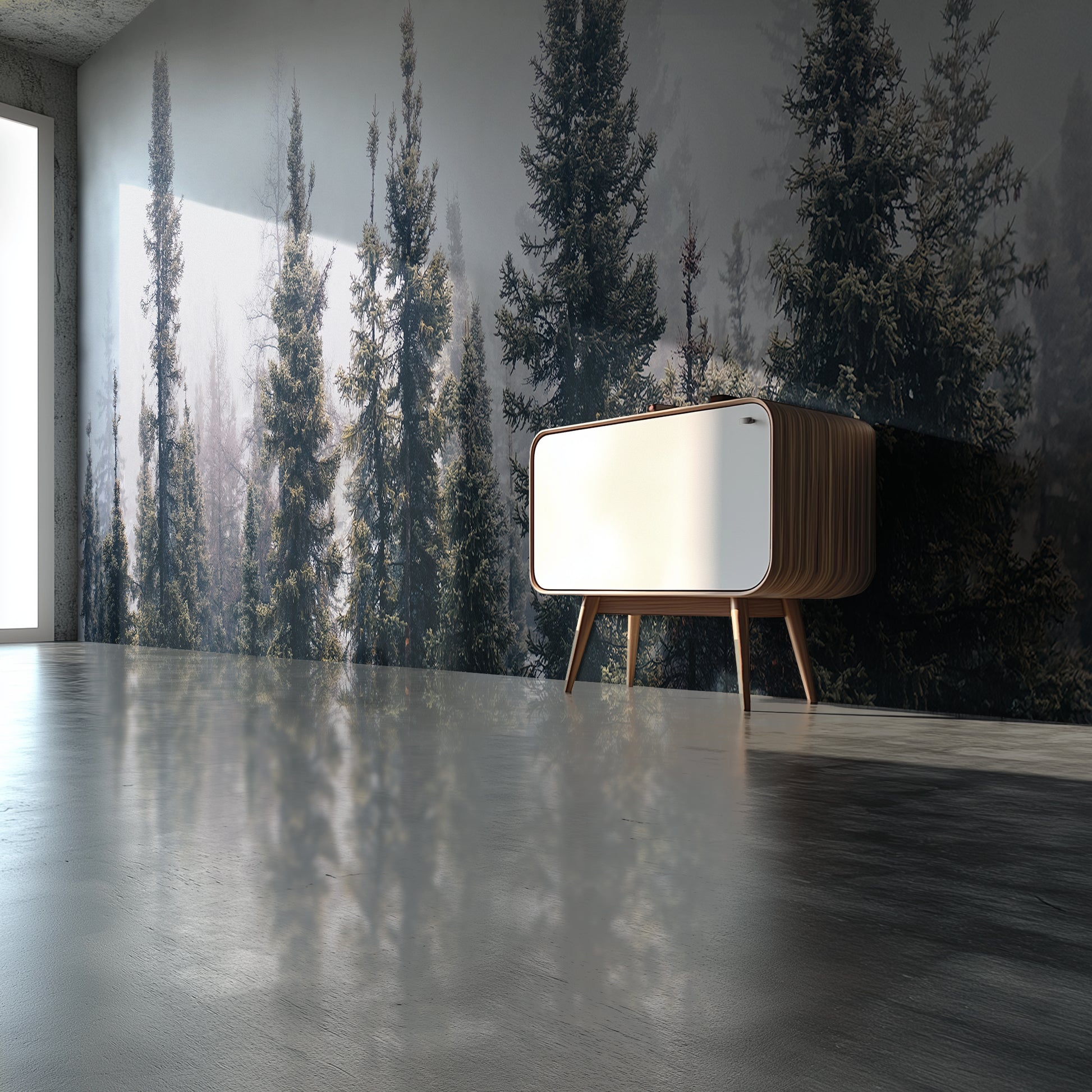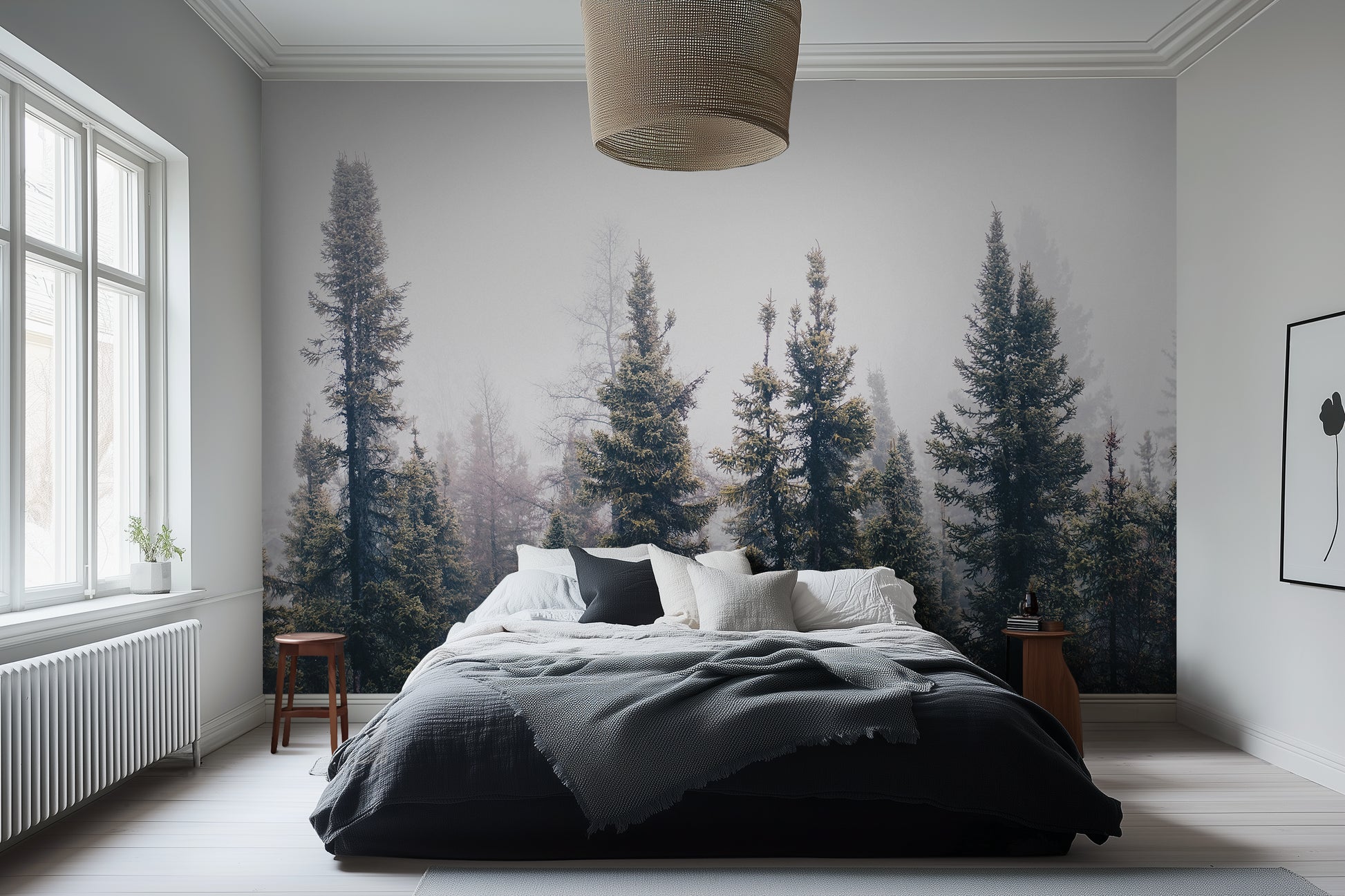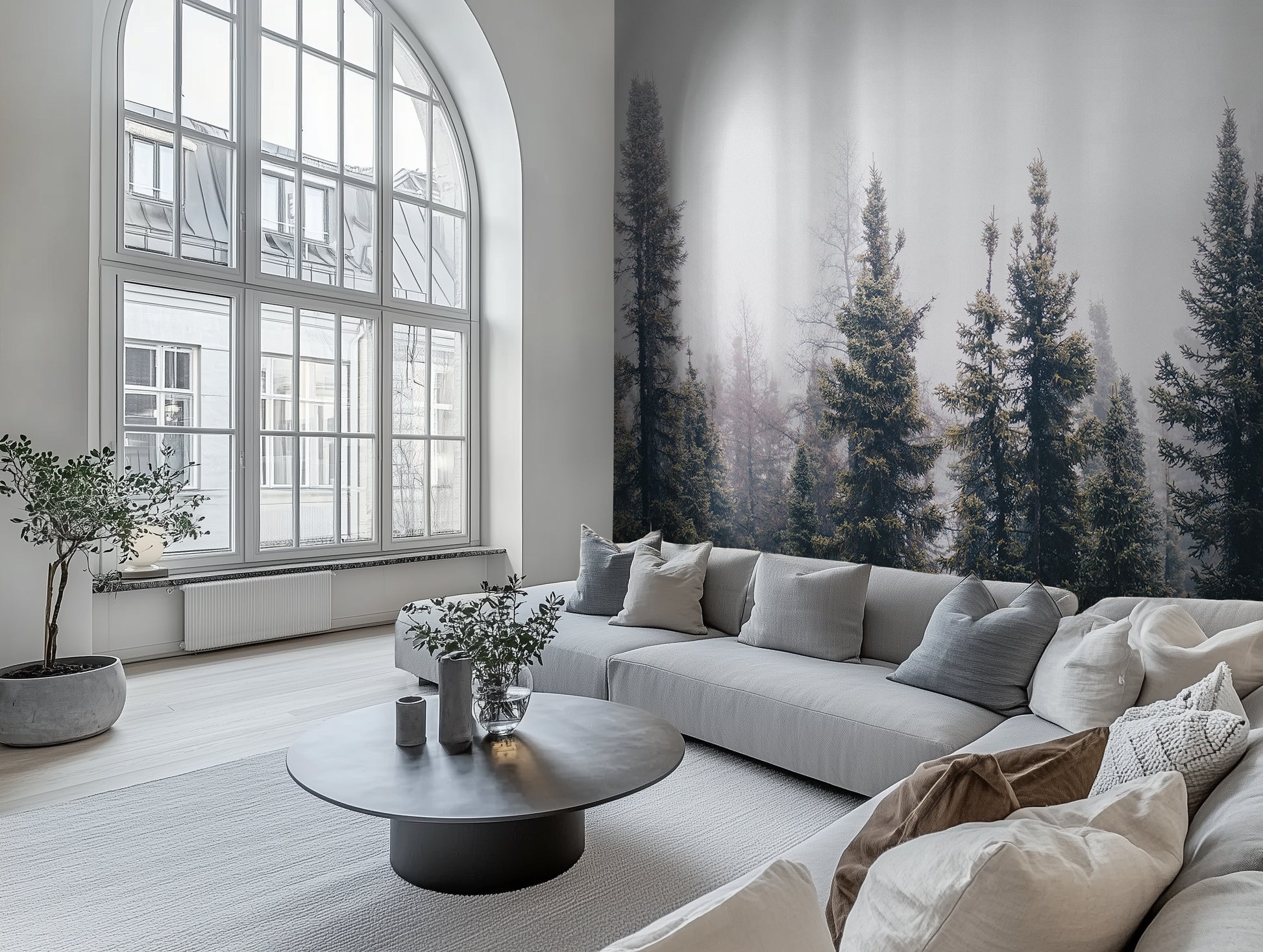 How it fits into current design trends: As biophilic design continues to dominate, foggy tree murals are trending in calming interiors that prioritize stillness, texture, and light-toned palettes.
