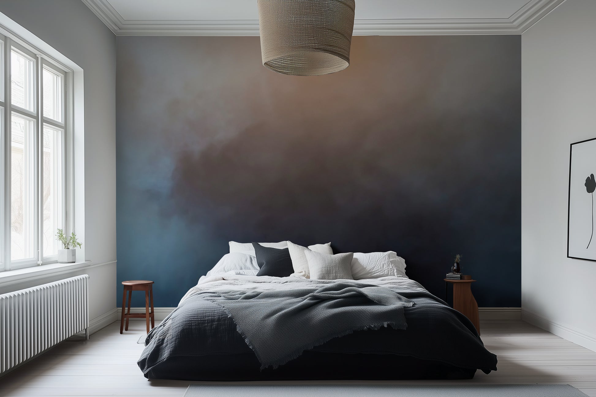 How it fits into current design trends: Moody gradient skies and storm-toned palettes are growing in both brutalist and romantic interiors. This wallpaper offers an atmospheric, painterly version of that trend.