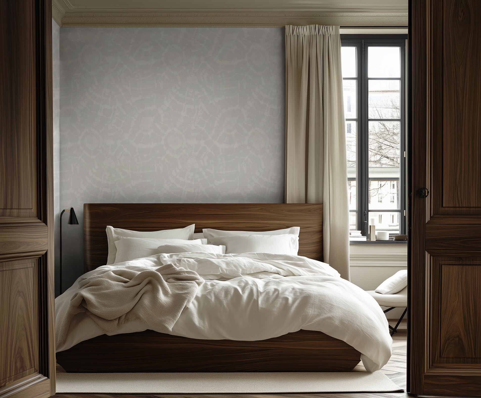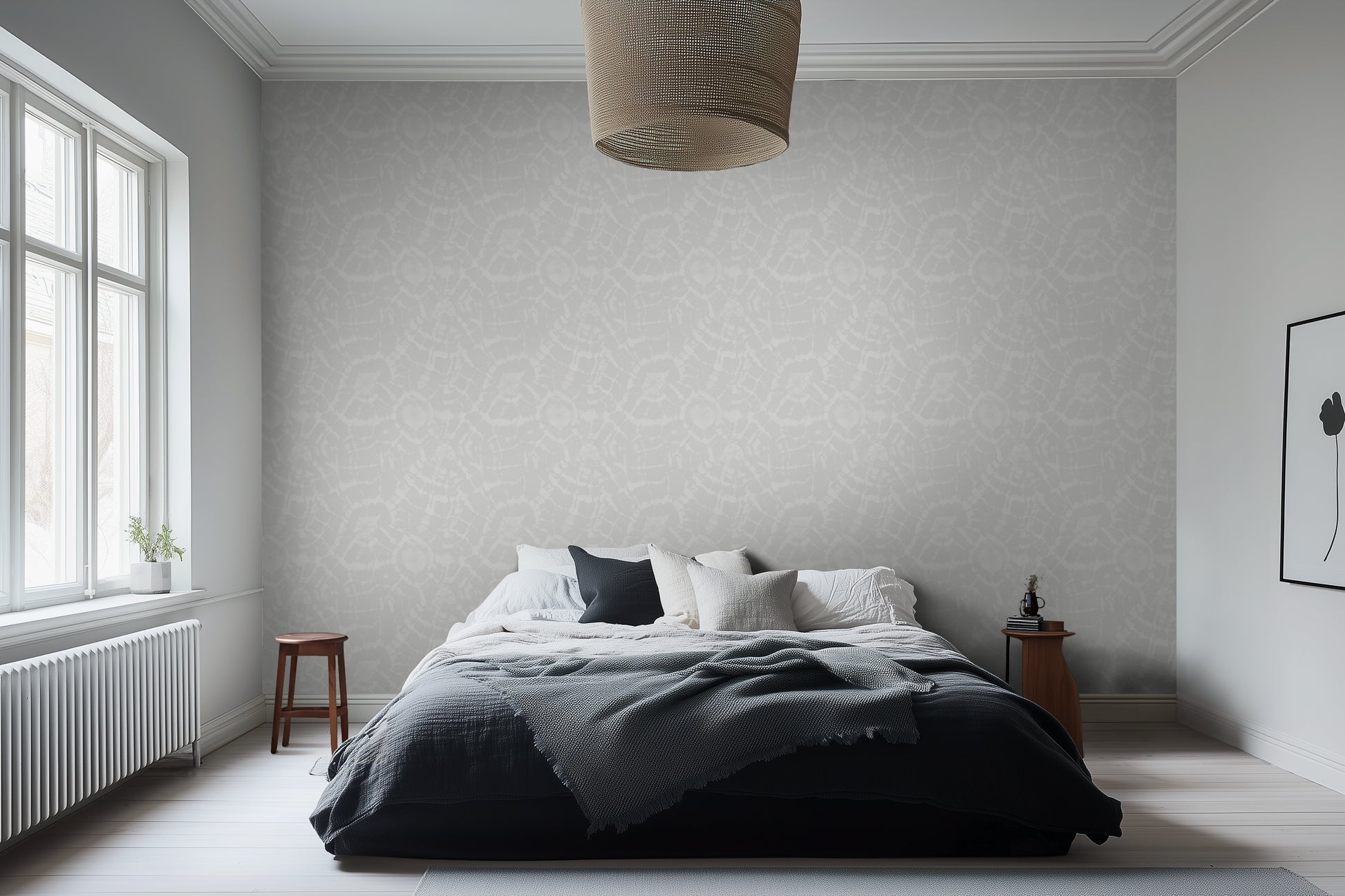 Tideback – White Lace on Soft Dove Grey takes inspiration from the intricate geometry of tortoise shells — here rendered in soft grey and white for a pattern that feels both organic and architectural. Subtle but distinctive, it’s perfect for serene interiors that want quiet texture with a story behind it.