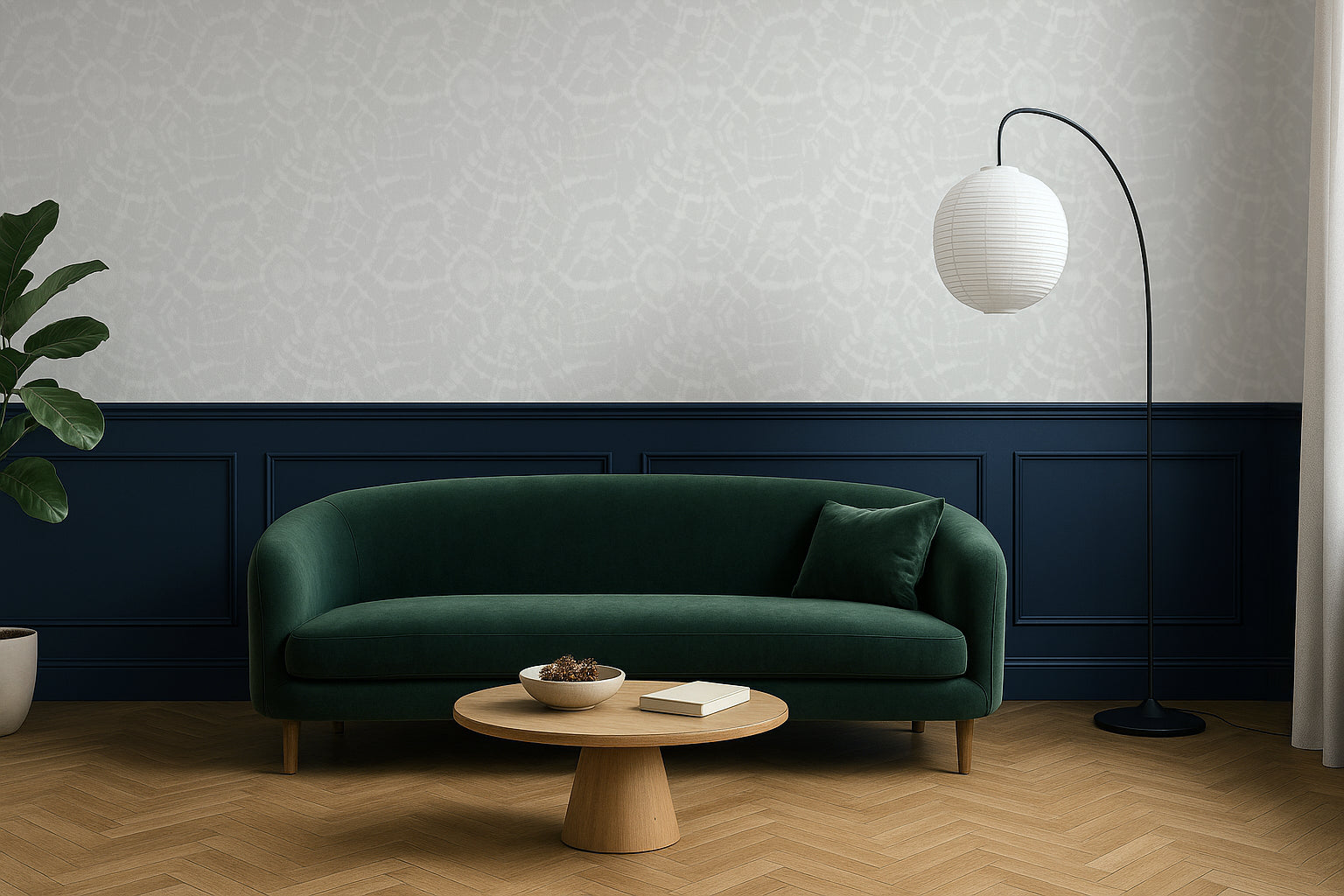 Organic geometry is trending across interiors, from honeycomb tiles to biomorphic wall textures. White Lace on Soft Dove Grey delivers that movement in a softer, more timeless way — perfect for both minimalist and layered spaces.