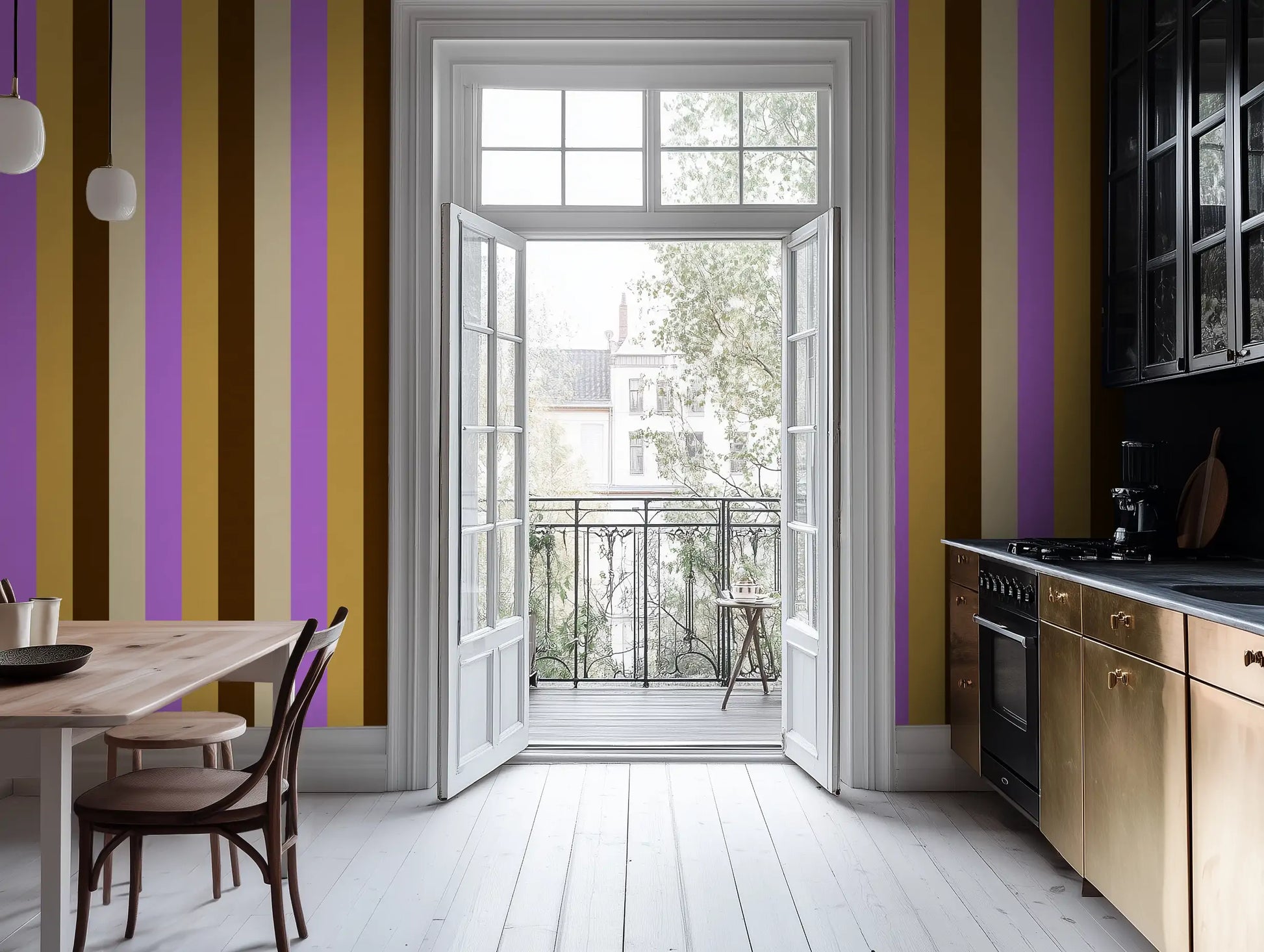 Perfect for maximalist interiors, artistic spaces, and globally inspired homes, this India-inspired striped wallpaper pairs beautifully with brass accents, jewel-toned furniture, and handcrafted details, bringing a sense of adventure, culture, and unapologetic color to your walls.