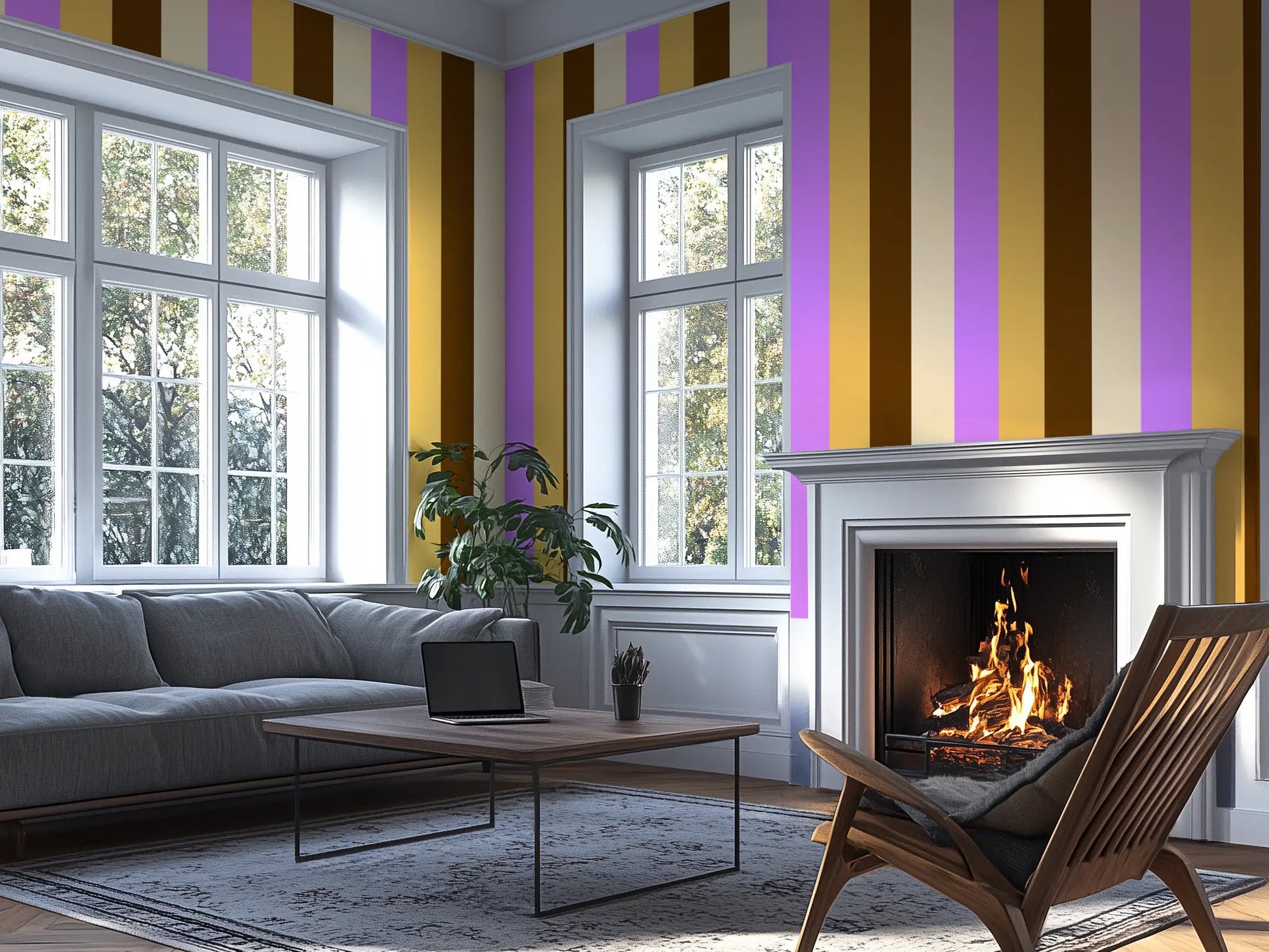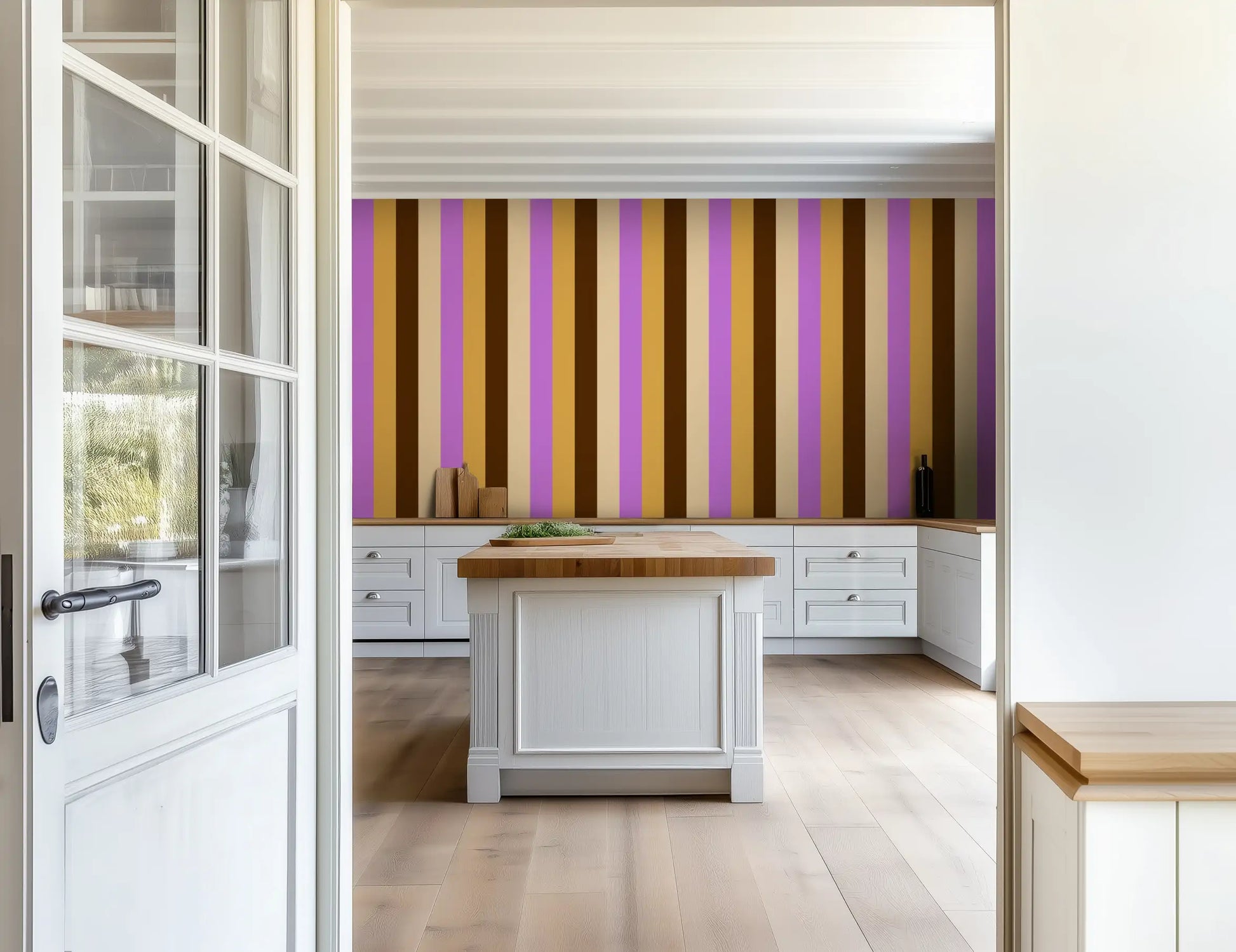 Jaipur is a city that never holds back on color—it bathes itself in warm terracottas, rich purples, and golden ochres, all extracted from its ornate palaces, intricate textiles, and sunlit streets. We turned these hues into a vibrant striped wallpaper mural, blending heritage with modern design in a way that demands attention.