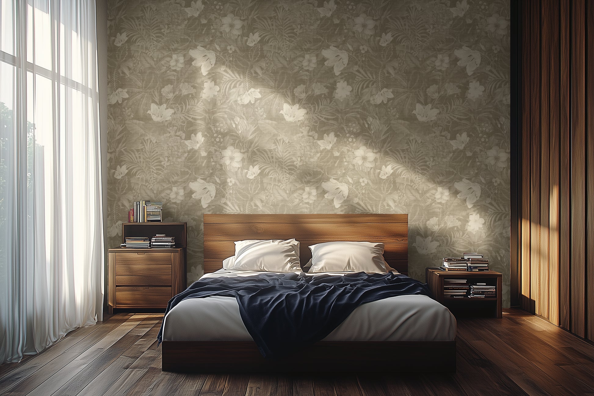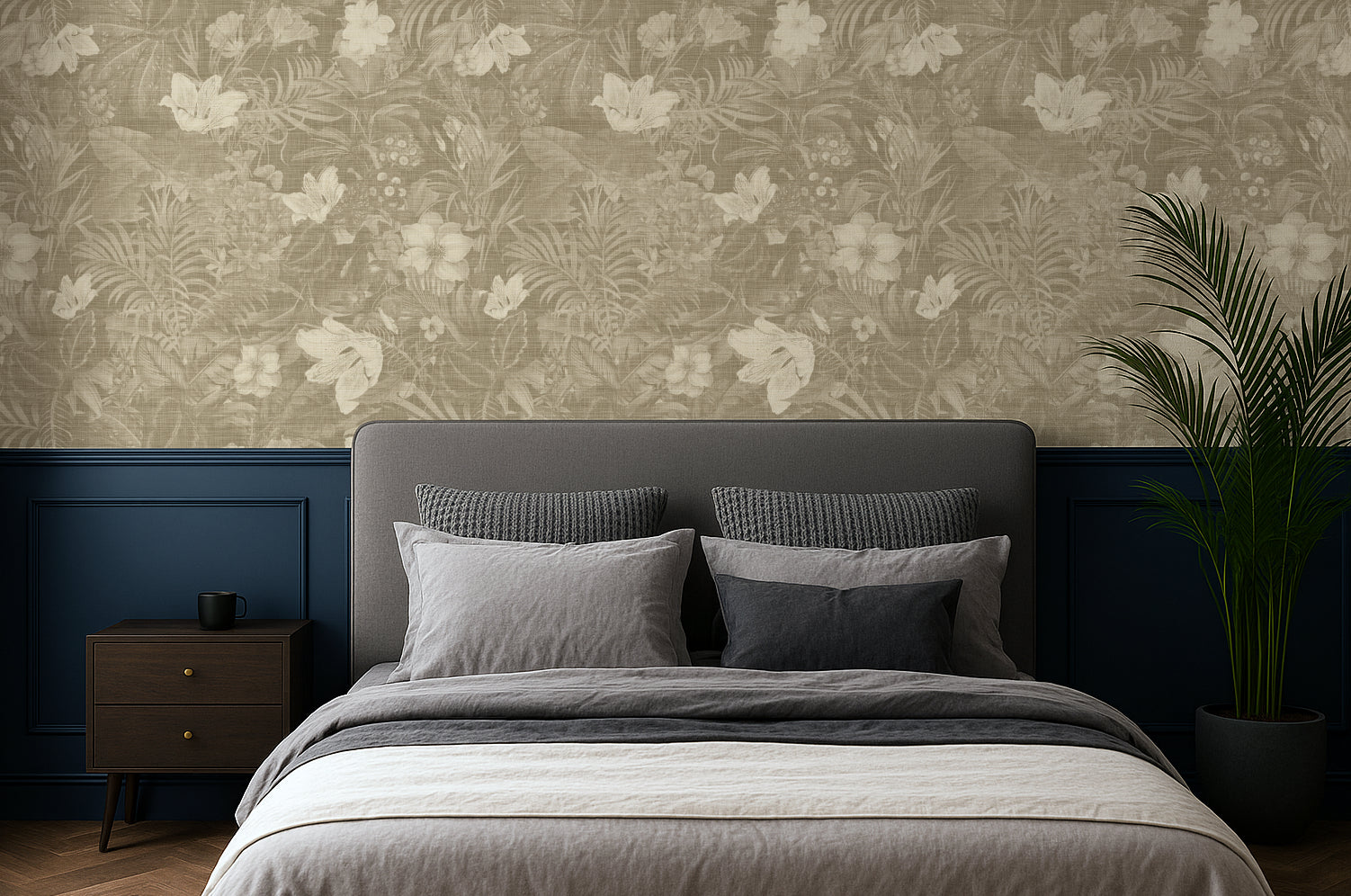 Flower Dance: Khaki brings an earthy, grounded calm — like a garden at golden hour. The florals feel more integrated with the background, almost like pressed botanical fabric, creating a subtle tapestry effect. It’s nature-inspired, warm, and timeless — ideal for interiors that lean toward rustic elegance, natural textures, and earthy sophistication.
