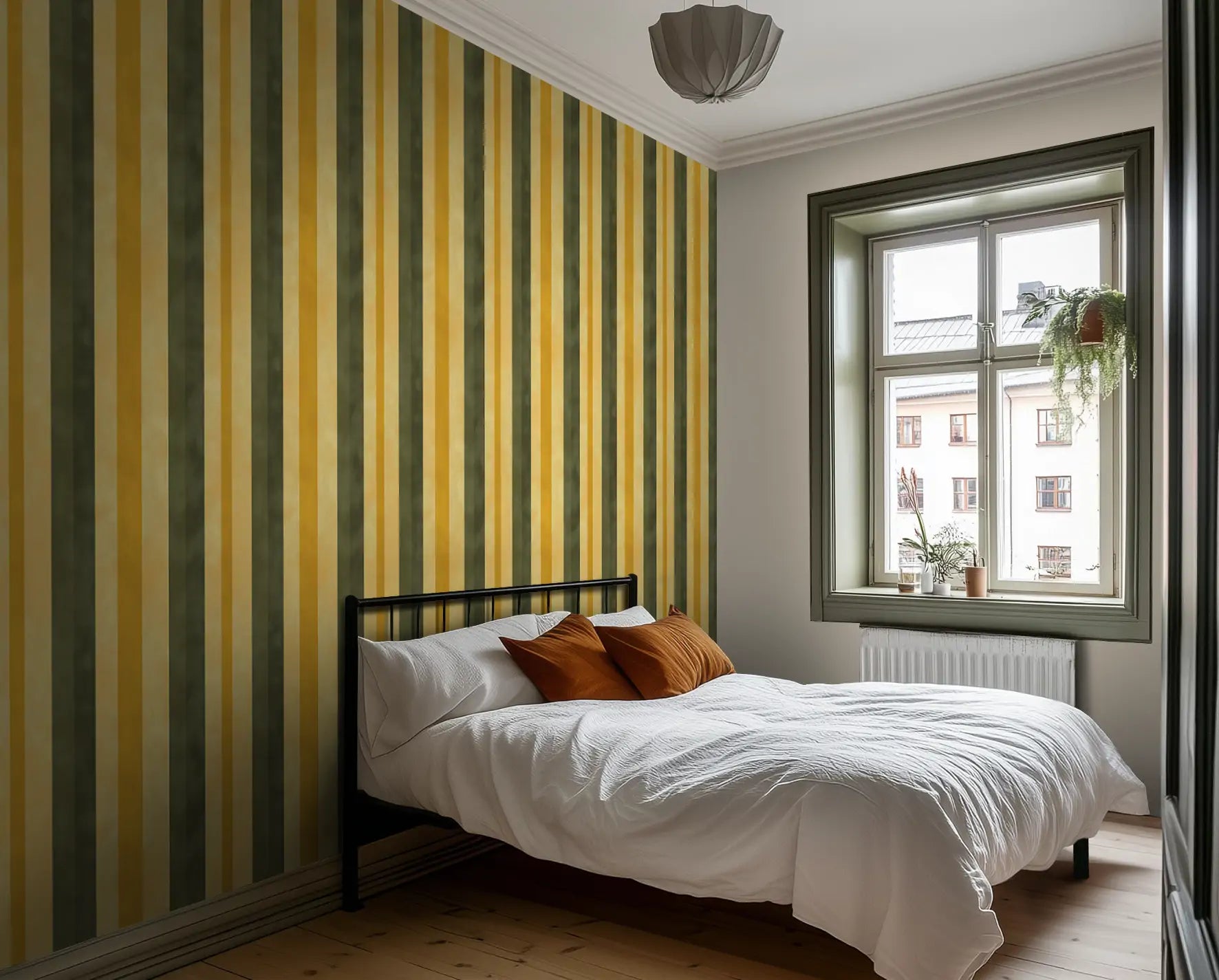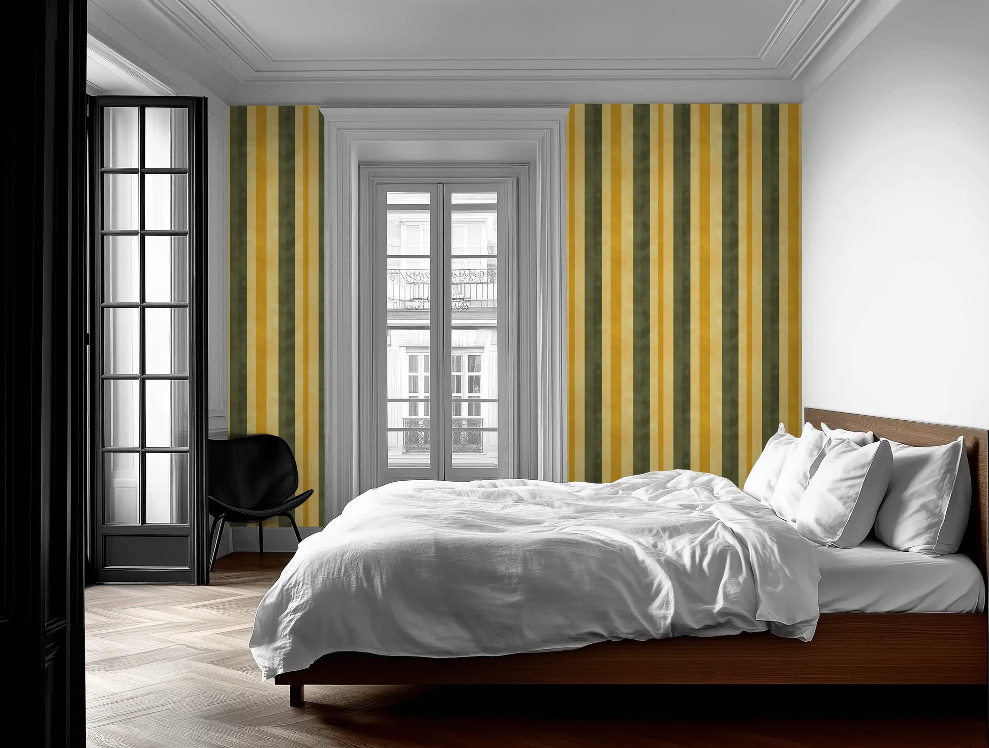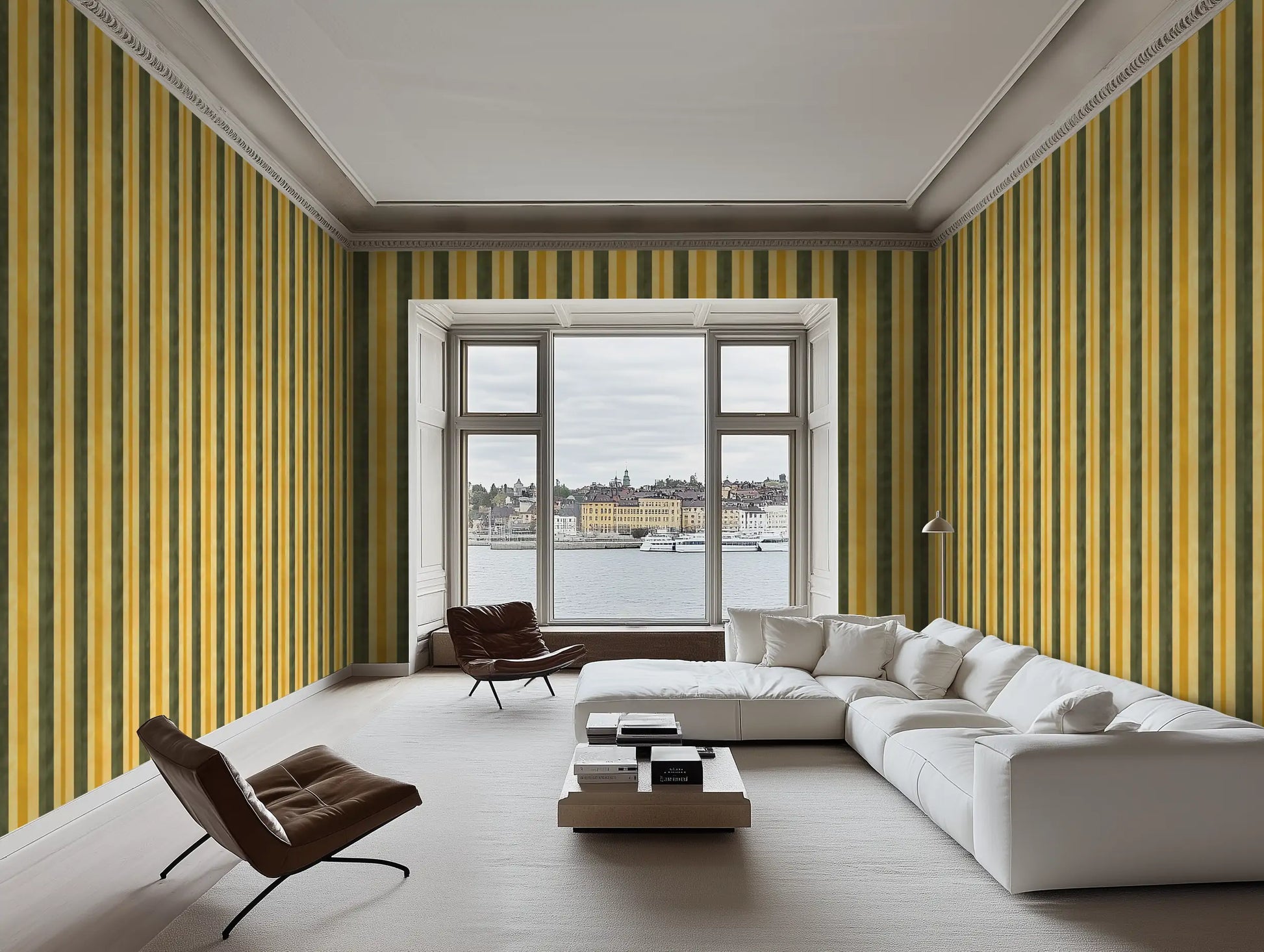 Perfect for cozy dining spaces, Tuscan-inspired interiors, or modern rustic homes, this Provence striped wallpaper pairs beautifully with aged brass, ceramic vases, and woven textures, bringing a sense of earthy elegance to contemporary spaces.