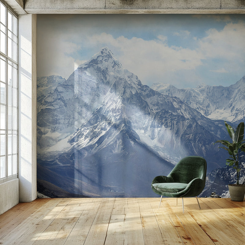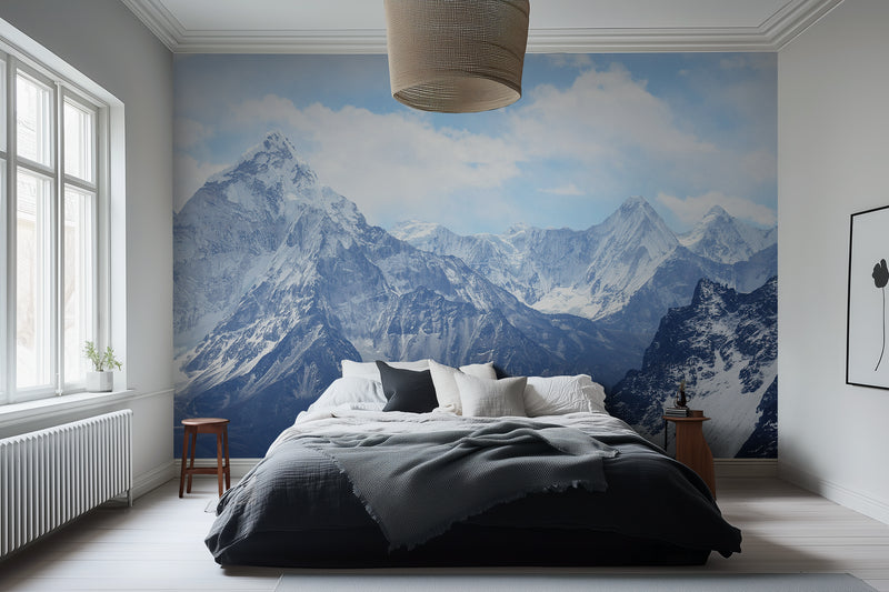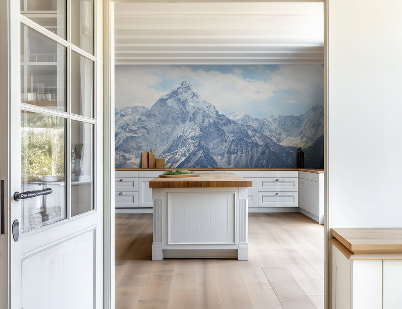 How it fits into current design trends: High-alpine imagery and icy color palettes are being embraced in modern rustic and contemporary minimal interiors. This wallpaper fits like a glacier-cut key.